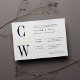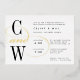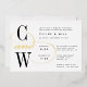 Des invitations à dîner de répétition élégantes ornent vos initiales de lettres blanches élégantes, auxquelles s'ajoute un swooping orné "et" en feuille d'or. Personnalisez avec vos détails de la cérémonie de mariage et de la répétition et du dîner ou de la célébration.