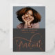 Félicitez ce diplômé exceptionnel avec un design saisissant, distinctif et contemporain. Le terme "diplômé" est écrit de manière élégante en or rose véritable à la base du modèle, sur un fond gris foncé, laissant de la place pour le nom de votre diplômé, la date et une photographie. Au verso de la carte, il y a de la place pour trois photos supplémentaires et les détails de votre fête. Personnalisez cette mise en page avec vos propres détails distinctifs pour créer une invitation de fête magnifique.