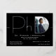 Une invitation moderne pour une fête de remise de diplôme de doctorat avec une feuille d'argent, un thème noir et blanc. Célébrez l'obtention de votre doctorat avec cette invitation élégante. Ajoutez simplement votre photo et vos informations, ajoutez cette invitation à votre panier et célébrez cette réalisation majeure.