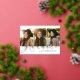 Un script ludique mais simple diplômé en feuille se trouve au bas de 3 photos verticales. Le texte personnalisé comprend la place pour le nom du diplômé ainsi que les détails de l'école et de l'année. Le dossier noir neutre est doté d'un simple motif de grille, et la couleur peut être changée en cliquant sur "customiser plus loin". Le centre a de la place pour le texte d'invitation de la fête de remise de diplômes ou il peut être laissé vide. Annoncez la réalisation de votre diplômé à vos amis et à votre famille avec ce design!