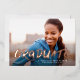 Cette faire-part de remise de diplômes avec une photo et l'invitation de remise de diplômes comporte une photo pleine image avec le mot "gradué" en gras brosse type dans votre choix de feuille chic. Cette carte élégante offre également de la place pour le nom du diplômé, l'école et l'année et tous les autres détails que vous voulez partager. Le dos est un noir coordonné, émaillé de confettis blancs avec de la place pour les détails de la fête de remise des diplômes. C'est une excellente façon de célébrer un diplôme et d'annoncer l'information à des amis et à la famille. Cette carte cool est également en coordination avec les accessoires et la décoration de la collection Lea Delaveris Design Bold Graduate Overlay.
