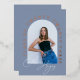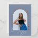 Célébrez les grandes réalisations de votre grand grâce à cette invitation de remise de diplômes en or bleu et rose moderne et élégant ! Doté d'un cadre photo unique en forme d'arc et d'un script manuscrit moderne, cette invitation impressionne tous vos invités. Le cadre vous permet d'afficher une photo préférée du diplômé, ce qui en fait une invitation vraiment spéciale et personnalisée. Envoyez-les à vos amis et à votre famille pour leur faire connaître le grand jour de votre grand-père. C'est une façon parfaite de commémorer cette occasion spéciale !