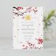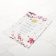 Un faire-part de mariage avec des fleurs rouges en chute dans cadre doré et double Xi.