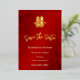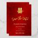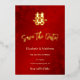 Un double symbole de bonheur artistique en or sur un arrière - plan floral rouge chatoyant. Enregistrez le texte de la date dans un élégant script manuscrit. Produits mariages chinois correspondants disponibles.