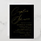 Simples couples douche des invitations avec "Douche Couple" affiché dans un script de calligraphie en feuille d'or avec un arrière - plan noir. Personnalisez les invitations à la douche du couple en papier noir et or avec les noms du couple et les détails de la douche ci-dessous. L'invitation wedding shower moderne inverse pour afficher un arrière - plan noir solide.