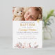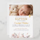 Invitation En Aluminium Élégance florale rose avec photo et baptême croisé