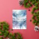 Invitation de mariage minimaliste d'hiver avec des cristaux de glace élégants à l'aquarelle dans des tons argent givré et bleu poussiéreux. Parfait pour une célébration moderne sur le thème glacial.