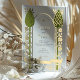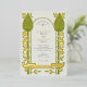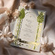 Faites une déclaration grandiose avec cette faire-part de mariage exquise, profondément inspirée par l'élégance des mouvements Art Nouveau et Arts & Artistes. Ce design très stylisé présente une arcade symétrique créée à partir de plantes botaniques en forme de chardon d'olivier, le tout magnifiquement dessiné dans une feuille de faux or luxueuse. De délicieux roses en or gravissent les tiges majestueuses, ajoutant une touche de romantisme. Vos détails mariages sont encadrés avec grâce dans cette arche architecturale, dressée contre un arrière - plan gris et élégant. Une bannière d'or bien en vue en bas affiche élégamment votre date de mariage, en ajoutant une touche de régal finale. Cette invitation, avec sa palette de couleurs raffinée et son flair artistique unique, est parfaite pour une célébration mariage formelle, vintage ou unique.