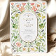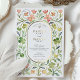 Célébrez votre journée spéciale avec ce magnifique faire-part de mariage d'inspiration Art Nouveau. Une délicate bordure en aquarelle de fleurs peintes à la main dans des tons romantiques de rose, de rose doux et de magenta, avec un feuillage vert luxuriant et de subtils accents de bleu périvent, encadre gracieusement vos détails. Au coeur du design, une élégante feuille d'or ovale met en valeur vos noms et informations mariages, ajoutant une touche de luxe intemporelle. Le design est imprimé sur un arrière - plan crème subtilement texturé, rehaussant son charme vintage et son attrait artistique. Idéal pour un jardin sophistiqué, une mariage vintage ou romantique classique.