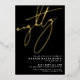 The party details are arranged neatly at the bottom left in classic white serif fonts, keeping the layout minimal and refined. The back side is solid white for a clean, polished finish. All colors and foil options can be customized to match your personal style or party theme.