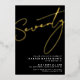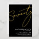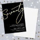 The party details are arranged neatly at the bottom left in classic white serif fonts, keeping the layout minimal and refined. The back side is solid white for a clean, polished finish. All colors and foil options can be customized to match your personal style or party theme.