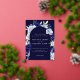 Cette invitation est élégante et sophistiquée, parfaite pour les couples qui rêvent d'un mariage classique et romantique. Le design se compose d'un magnifique arc de fleurs bleues et blanches luxuriantes, encadré par une bordure en feuille d'or chatoyante. Le riche arrière - plan de marine crée un décor luxueux, tandis que les fleurs bleues douces et poussiéreuses ajoutent une touche de fantaisie. L'invitation est imprimée sur un carton de haute qualité et présente des accents de feuille d'or pour une touche de glamour.