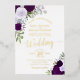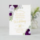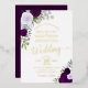 Cette belle invitation à la feuille présente des roses d'aquarelle peints à la main dans des tons de violet poussiéreux, de lavande et de prune, ainsi que des sprigs d'eucalyptus et de verdure du jardin. L'écriture comprend une calligraphie de script sophistiquée avec des swashes élégants à la fin des lettres, et est fait en papier doré pressé ajoutant une touche de classe et de style pour votre journée spéciale.