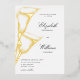Une invitation de mariage classique, moderne et élégante en noir, blanc et or, avec un dessin à l'encre de deux fleurs calles de lys superposées numériquement d'or (pas de vrai papier d'aluminium !). Une calligraphie élégante se marie merveilleusement à l'élégance des fleurs. Un choix sympathique pour un mariage noir, blanc et or, un mariage de cravate noir formel ou un mariage aux lys calla.