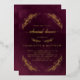 Conception élégante de l'invitation à dîner de répétition avec un design de feuille d'or réel avec des éléments botaniques sur un arrière - plan rouge bordeaux foncé.