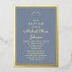 Invitation En Aluminium Elégant Dusty Blue Gold Croix Religieux Baptême