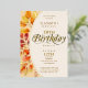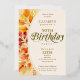Cette belle invitation d'anniversaire d'automne présente d'élégantes calligraphies de feuille d'or et feuillage d'automne. Un excellent moyen pour les amis et la famille invitations de célébrer le 50e anniversaire à l'automne.