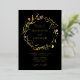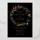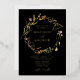 Élégantes invitations de mariage fleurs sauvages avec vos noms affichés en feuille d'or entouré d'une couronne de feuillage vert et de fleurs dans les tons jaune doré, rose et violet avec un arrière - plan noir. Personnalisez les invitations aux mariages fleuris d'été avec vos détails mariages ci-dessous. Les invitations fleurs sauvages en feuille d'or sont parfaites pour les mariages du printemps et de l'été.