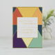 Cette faire-part de mariage moderne est parfaite pour le couple qui veut faire une déclaration élégante. L'invitation présente une calligraphie rétro audacieuse sur un rectangle blanc avec un arrière - plan géométrique abstrait vibrant et super. La combinaison artistique de l'ancien et du nouveau donne à tout événement une touche unique et accueillante. Que vous planifiez un simple rassemblement ou une grande fête, cette invitation fera en sorte que vos invités sachent que c’est une occasion de se souvenir.