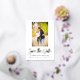 Partagez les nouvelles de votre fiançailles et de votre prochain mariage avec cette élégante carte d'enregistrement de feuille d'or. Customisez le texte à l'avant et à l'arrière avec tous vos détails mariages. Ajoutez votre photo de fiançailles pour un faire-part parfait pour sauver la date.