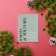 Un faire-part de mariage simple et minimaliste, avec des noms élégants en feuille d'or typographique, couleur vert sauge et design contemporain.