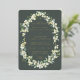 Berries peintes à la main et tiges d'eucalyptus disposées dans un beau cadre botanique contre un arrière - plan vert gris foncé. Le texte et les points dispersés sur le devant de la carte sont pressés à l'envers. Tout le texte est entièrement modifiable. Veuillez consulter cette collection dans mon magasin pour les invitations avec des options de libellé alternatives, des couleurs différentes et pour la coordination des articles.