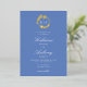 Invitation En Aluminium Élégant Hiver Blue Gold Crest Monogrammes Mariage