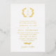 Elégante invitation de mariage dans une feuille d'or et la conception de typographie blanche avec un monogramme de couronne de laurier et de belles polices. Faire-part de mariage typographique avec un monogramme verdoyant et de belles polices. Faire-part de mariage en feuille d'or monogramme avec un design stylisé typographique et verdure.