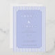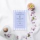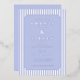 This elegant wedding invitation features a classic design with vertical blue and white stripes, creating a balanced and sophisticated background. The soft lavender color palette adds a serene touch, while the centered ornate border frames the text beautifully. With a formal serif font, the invitation highlights the names of the couple as the focal point, surrounded by essential event details. Its clean layout and generous spacing ensure clarity and readability, making it perfect for a timeless and refined celebration.