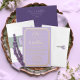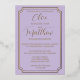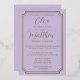 Élégant faire-part de mariage lilas et lavande intemporelle avec écriture or et serif à l'intérieur d'un cadre