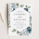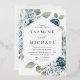 Invitation En Aluminium Elégant Mariage à cadre bleu bleu floral