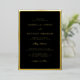 Simple, moderne et design, cette belle faire-part de mariage noire présente une bordure élégante et un script de calligraphie élégant imprimé en feuille d'or véritable.