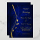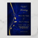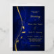 Cette belle faire-part de mariage dans votre choix d'or, d'argent ou de feuille d'or rose donnera un sens de l'élégance à votre mariage ! L'avant gauche est ornée d'un tourbillon gracieux orné de quelques feuilles. Votre texte mariage est à droite de l'image. Tout est placé sur un étonnant arrière - plan abstrait bleu royal profond. L'arrière de l'invitation est le même arrière - plan bleu abstrait. Élégant pour toute saison.