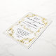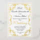 Une double bordure de feuille d'or opulente de style Régence baroque entourée d'un cadre doré classique, cette annonce élégante de votre célébration de mariage a une tonalité romantique, voire royale. Votre fête de mariage commence avec l'arrivée de cette invitation de mariage. Glamour, élégant et excitant, laissez cette invitation commencer votre mariage de rêve.