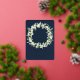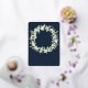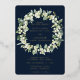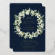 Des neiges peintes à la main et des tiges d'eucalyptus disposées en une belle couronne contre un arrière - plan de la marine noire. Le texte et les points dispersés sur le devant de la carte sont pressés à l'envers. Tout le texte est entièrement modifiable. L'arrière comporte une diffusion optionnelle de points. Veuillez consulter cette collection dans mon magasin pour les invitations avec des options de libellé alternatives, des couleurs différentes et pour la coordination des articles.