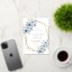 Faites une première impression étonnante avec ce Faire-part de mariage en fleurs géométriques bleu floral élégant. Avec un mélange sophistiqué de flores bleu et bleu marine poussiéreux, ce design est magnifiquement encadré dans une bordure d'or géométrique moderne, ajoutant une touche d'élégance et de romantisme.