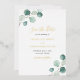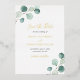 Mariage élégant Sauvez la Date avec un design simple avec une aquarelle peinte de la verdure d'eucalyptus dans le coin supérieur gauche et le coin inférieur droit avec vos noms et des informations supplémentaires en papier or réel. L'arrière est une teinte assortie de vert sage moyen. Ce mariage botanique rustique Save the Date avec une touche moderne est parfait pour un mariage de printemps ou d'été.