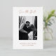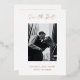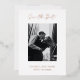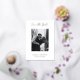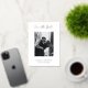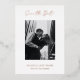Un mariage moderne enregistrer la carte de date avec un design simple et minimal avec "enregistrer la date" dans une élégante typographie de script au-dessus de votre photo verticale. Ci-dessous sont vos noms, date et ville dans une police serif classique. Le dos a une deuxième photo avec votre site web. Tout le texte à l'avant est en papier d'aluminium et le dos est en noir et blanc ; les deux peuvent être changés dans l'outil d'édition de conception.