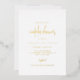 Une invitation à la douche classique et élégante pour les couples avec une disposition simple avec "douche pour les couples" dans un script moderne. Tout le texte sur le devant est en papier or. La disposition épurée et minimaliste de l'hôtel en fait une invitation à la douche à couple traditionnelle et formelle.