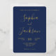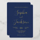 Faire-part de mariage en feuille d'or moderne et élégant. Aussi disponible en or rose ou en argent. Tout beau en combinaison avec bleu marine. Cette invitation peut être personnalisée au-delà des options standard en cliquant sur le bouton "Modifier en utilisant l'outil de conception" au bas de la section "Personnaliser" options.