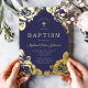 Elégant Marine Blue Floral Boy Baptism Gold Foil Invitation.