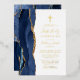 Invitation En Aluminium Elégant Marine Blue Gold Agate Première communion