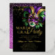 Make a statement with this Elegant Masquerade Mask Mardi Gras Party Invitation, designed for a glamorous and unforgettable celebration. Featuring a richly detailed purple, green, and gold masquerade mask accented with shimmering real gold foil confetti and foil typography, this invitation captures the opulence and mystery of Mardi Gras.