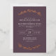 Faire-part de mariage mauve foncé avec verdure or rose. Élégant faire-part de mariage en feuille d'or rose avec un agencement élégant et traditionnel. faire-part de mariage doré rose avec un arrière - plan mauve foncé