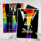 Make your announcement in style with this bold, modern gay wedding save the date card. The front features the full Elegant Modern Rainbow design with Save the Date in striking gold foil typography. The back includes a dedicated photo insert for the couple's favourite photo together, alongside a fully editable announcement message with names, wedding date, location, and wedding website.