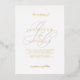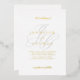 Un élégant monogramme gris clair et tendance avec de vraies typographies de feuilles d'or brillantes dans des invitations de mariage blanc à thème moderne et élégant.
