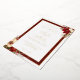 Cette faire-part de mariage romantique et classique à thème hivernal comprend des grappes de fleurs d'hiver rouges et blanches, des pins, des baies sèches et des brindilles rustiques personnalisées, des graphiques modernes et des champs de texte modifiables entourés d'une bordure damassée rouge riche avec de vrais bords de feuille d'or. Le dossier contient des graphiques floraux complémentaires et un champ de texte pour votre adresse de site Web.