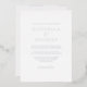 Cette invitation de mariage moderne et élégante présente un design minimaliste chic avec une véritable typographie en feuille d'argent sur le devant tandis que le revers est coordonné en noir