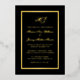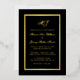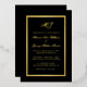 Cette élégante invitation de mariage comprend un script de calligraphie de feuille d'or et un cadre de feuille d'or sur un simple arrière - plan noir. Conçu par Susan Coffey.