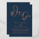 Voici notre design élégant et sophistiqué, orné de calligraphie rose en feuille d'or contre un riche arrière - plan bleu foncé. Ce design époustouflant est parfait pour le couple moderne à la recherche d'une beauté intemporelle. Personnalisez-le avec vos propres détails pour créer une invitation vraiment inoubliable.